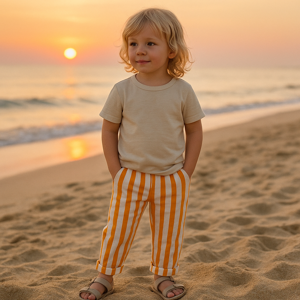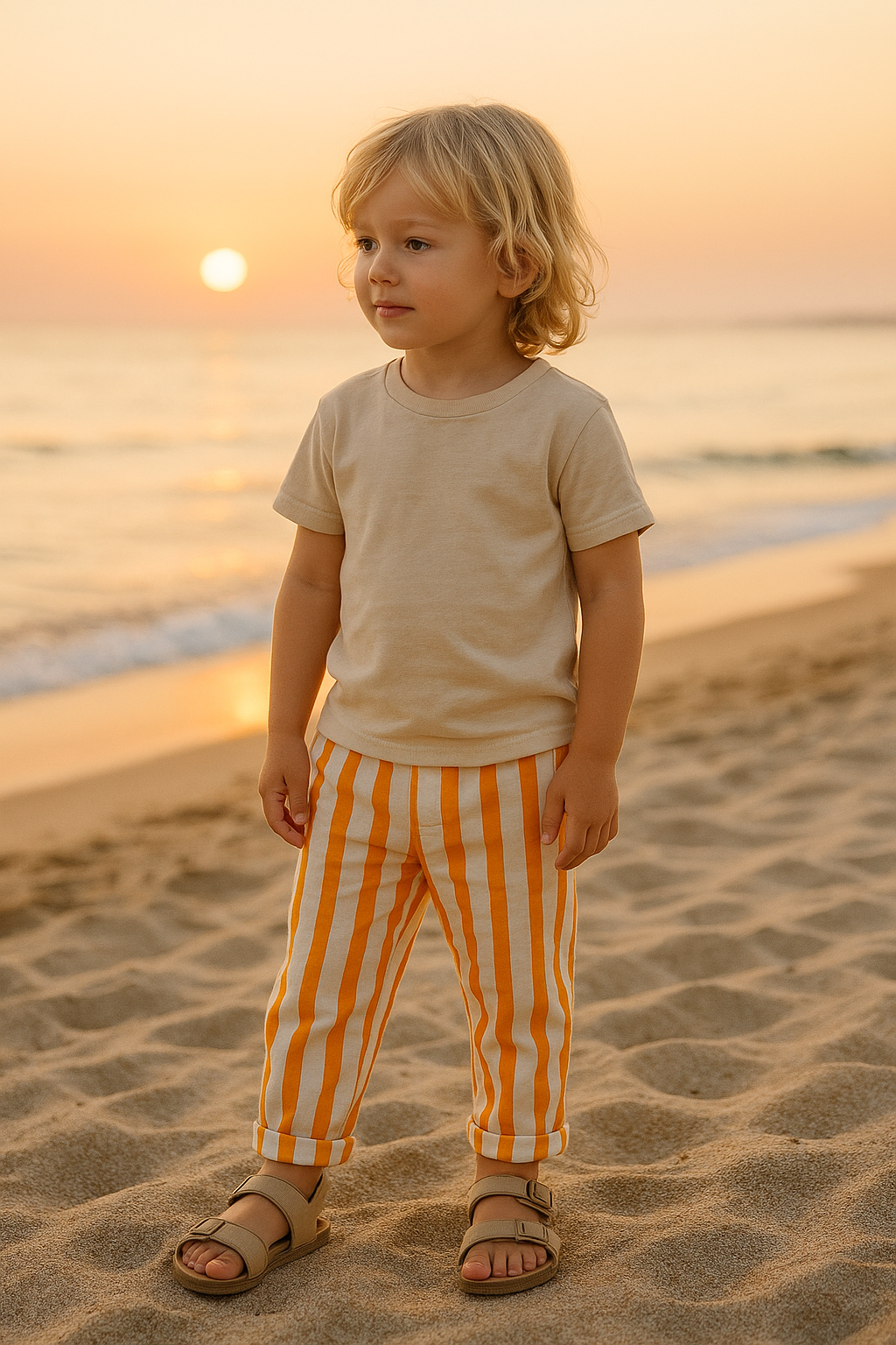 Le pantalon parfait pour un look vitaminé et tendance ! Ce pantalon enfant à rayures orange et écru offre un style frais et joyeux. Sa coupe droite, fluide et légèrement ample, garantit un confort optimal pour bouger, jouer ou se balader. Sa taille élastiquée au dos s’ajuste parfaitement à la morphologie des enfants.