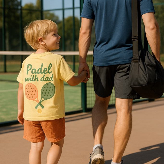 T-shirt enfant – Jaune – “Padel with Dad” 🎾