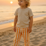 Le pantalon parfait pour un look vitaminé et tendance ! Ce pantalon enfant à rayures orange et écru offre un style frais et joyeux. Sa coupe droite, fluide et légèrement ample, garantit un confort optimal pour bouger, jouer ou se balader. Sa taille élastiquée au dos s’ajuste parfaitement à la morphologie des enfants.