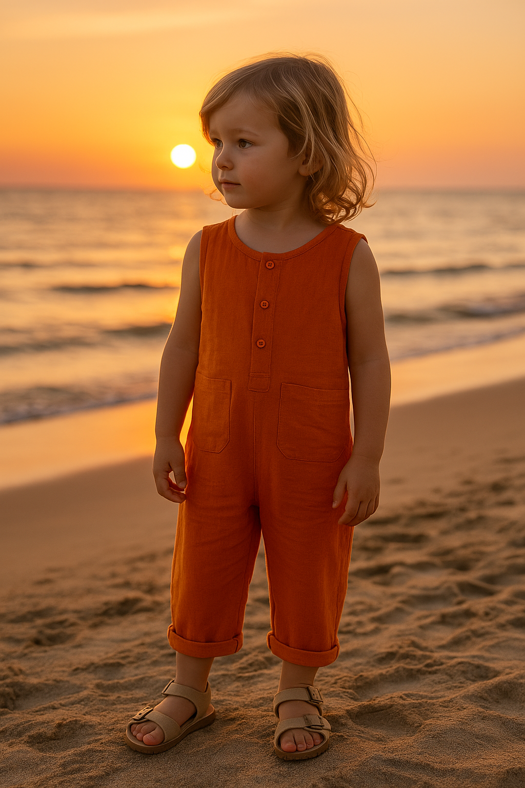 Allier confort, style et praticité n’a jamais été aussi facile avec cette combinaison enfant orange sans manches. Conçue dans un coton côtelé doux et respirant, elle offre une liberté de mouvement totale pour accompagner les kids dans toutes leurs aventures. Son coloris chaud et naturel s’accorde avec tous les looks du quotidien.